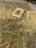 Dipped in golds and silvers this regal attire is a breath of fresh air for this wedding season. Blooming florals, meticulous hand-crafted modern patterns envisioned on a gold tissue base. Hand embroidered with lush gold and silver threads finished with elegant hand embellished crystals, delicately cut mirror pieces, sequins and gold zari.