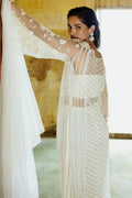 A symphony of elegance and opulence. This stunning design features a meticulously embroidered net shirt, complemented by luxurious raw silk trousers. Paired with a diaphanous organza dupatta adorned with intricate embellishments. The perfect choice for making a bold yet graceful statement this season.