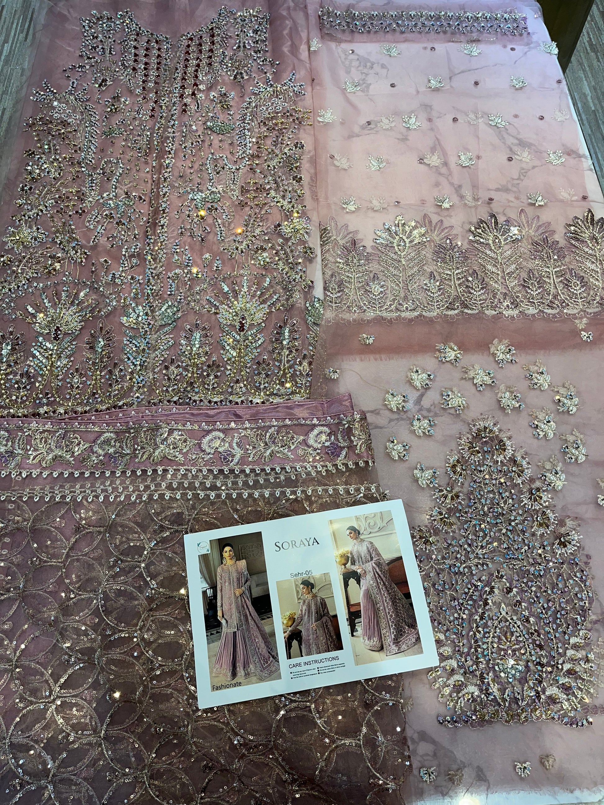 Nooré takes pride in its handcrafted party wear. Due to the delicate nature of our items, slight variations may occur (5-10%) in design, color, or embellishments. We recommend dry cleaning for all garments.