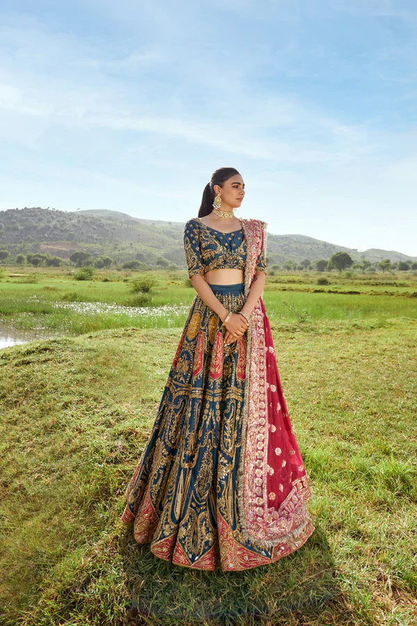 This stunning ensemble features a beautifully crafted blouse and a flowing dupatta, perfect for special occasions.
