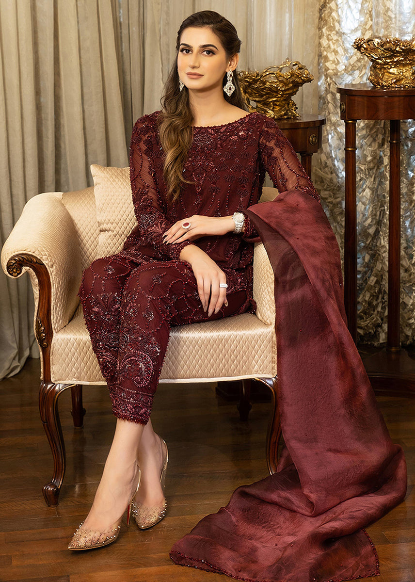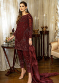 An ensemble that creates a picture of rich tradition and class, featuring vivid hues of red highlighted with tone on tone resham embroidery.